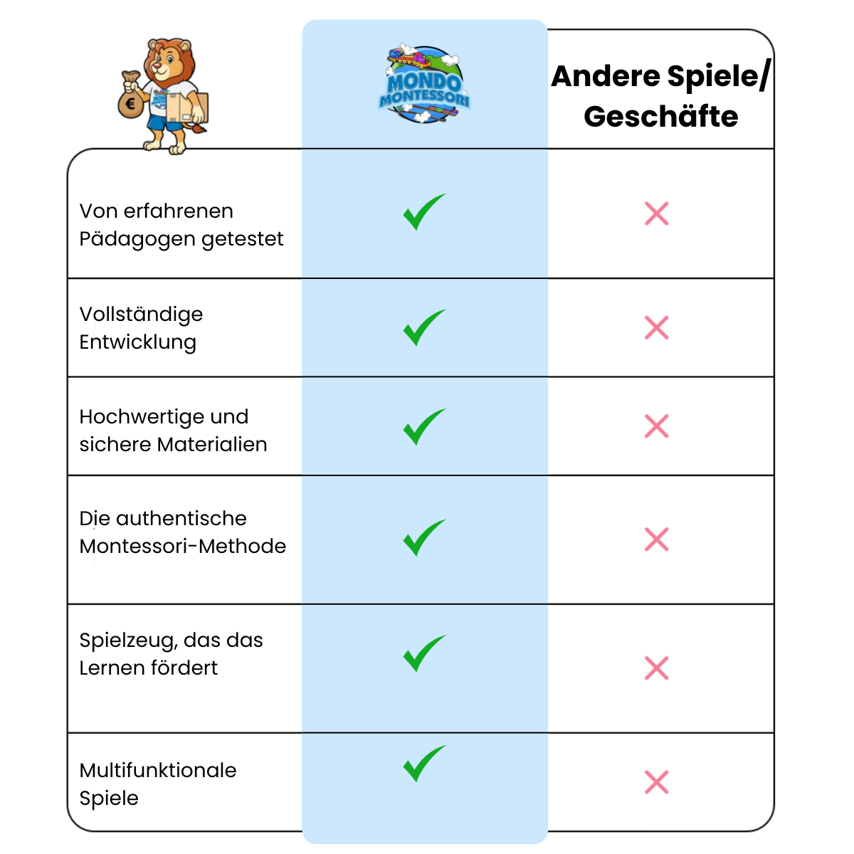 Vergleiche über 50.000 Bewertungen von Mondo Montessori-Kunden und finde die besten Spielsachen für deine Kinder!